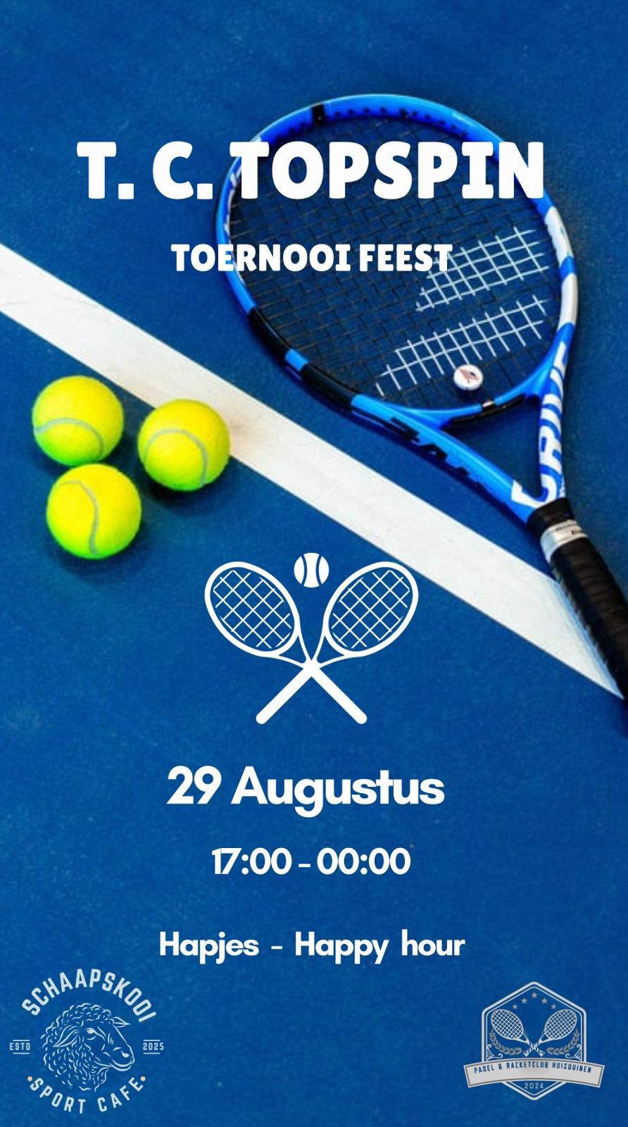 Kom jij ook naar het T.C. TOPSPIN toernooi feest?